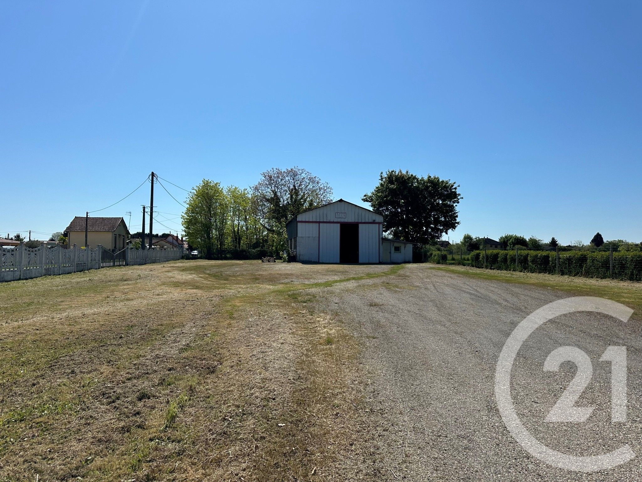 Le bâtiment d'une surface de 220 m² comprend deux bureaux, une réserve ainsi qu'une salle d'eau avec WC. Il est implanté sur un terrain de 1800 m², parfait pour le stationnement, la logistique ou le stockage.